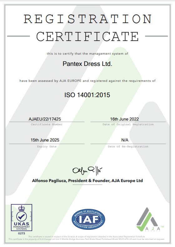 At Pantex Dress Ltd. our journey toward sustainability is ongoing. While these certifications mark significant milestones, we remain committed to exploring innovative ways to reduce our environmental footprint and enhance our sustainable practices. Together with our partners and stakeholders, we aim to lead the way in responsible manufacturing and contribute to a greener, more sustainable world.